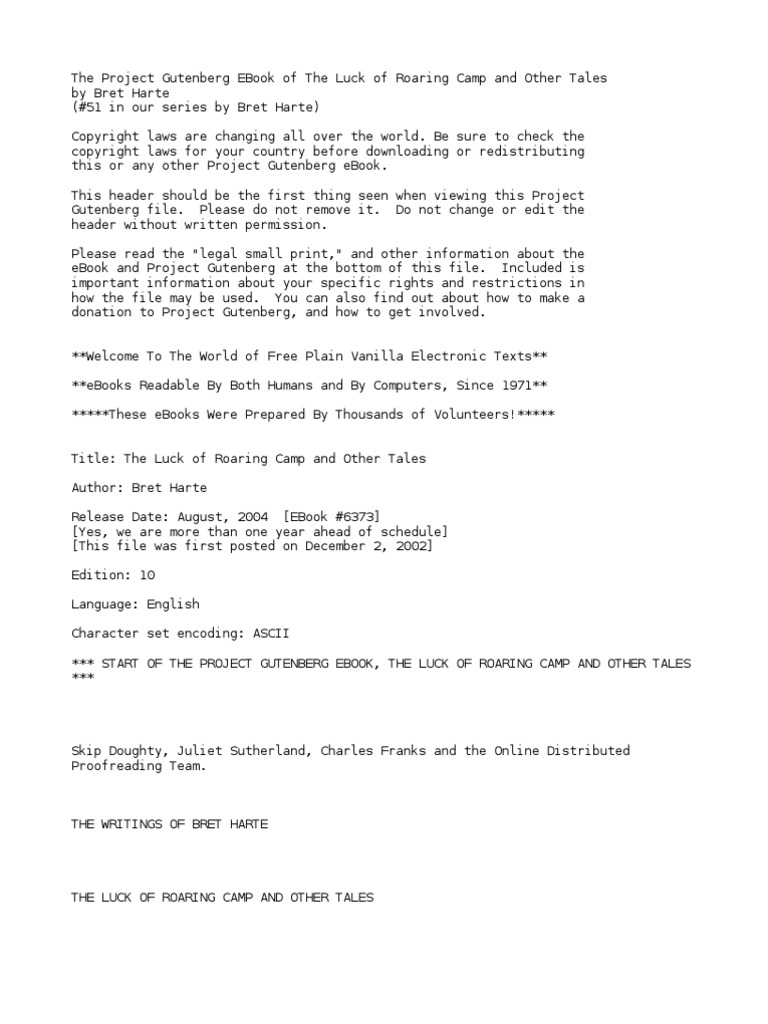 The Luck Of Roaring Camp And Other Tales By Harte Bret 1836 1902 Pdf Project Gutenberg E Books