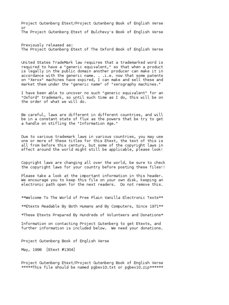 Bulchevy S Book Of English Verse Pdf Project Gutenberg Indemnity